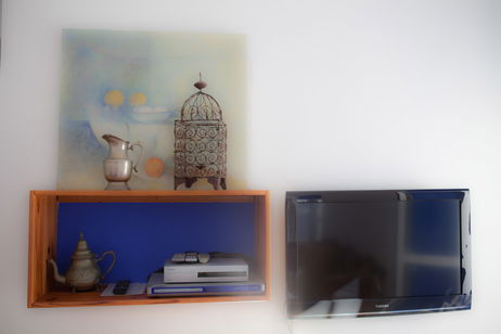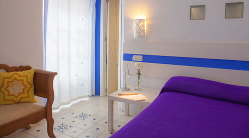 La Doble Superior dispone de una cómoda cama de matrimonio y en la zona de estar, una mesa de azulejo e hierro forjado con sus correspondientes sillas, preside la estancia, girando alrededor toda una serie de detalles vintage y auténticos: el baúl, el cabecero y el banco art-deco, todos de madera labrada antigua, el suelo hidráulico lleno de detalles florales árabes , las pequeñas lámparas de cristal coloreado, las teteras antiguas de latón...Dos maravillosos balcones enrejados andalusí, repleto de flores, llenan de luz y color nuestra Doble Superior.