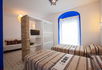 Esta amplia y versátil habitación Doble Superior tiene acceso desde la primera planta. Dispone de 2 camas individuales y una zona de estar, separando estos ambientes un decorativo armario exento de ladrillo visto. El sofá de la zona de estar se puede convertir en cama de matrimonio, ampliando la capacidad de la habitación hasta 4 personas.