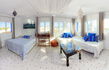 Cuenta con una cama de matrimonio y 2 individuales que hacen de sofá, la zona de estar está compuesta por una mesa baja de madera labrada y sobre de cristal, un escritorio vintage también de madera por si necesitas trabajar o quieres escribir y 2 sofás para ver el atardecer que hacen a la par por la noche de camas individuales.