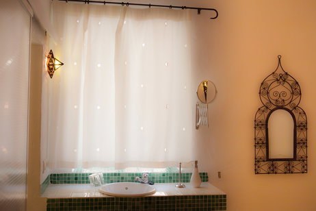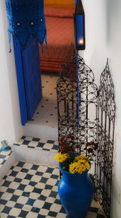 Cette chambre double avec un grand lit, confortable et accueillante, est décorée d'objets de style marocain et on y accède par le hall de nôtre établissement.